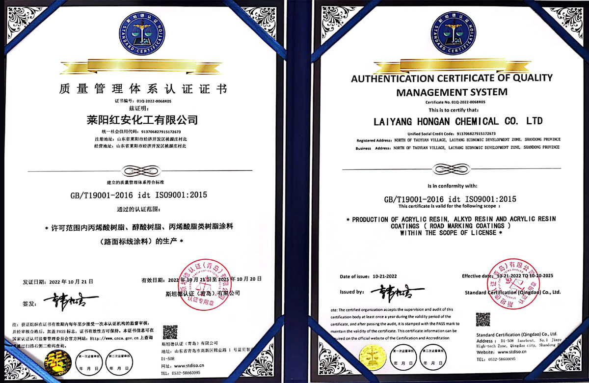 紅安化工經(jīng)過近二十年的打造和積淀,現(xiàn)已建成了一家專業(yè)研制生產(chǎn)涂料合成樹脂的綜合型工廠,位于山東省半島的腹地--萊陽市。公司已通過了三體系認(rèn)證,即ISO9000質(zhì)量管理體系認(rèn)證和環(huán)境、職業(yè)健康安全管理體系認(rèn)證,并獲得了六項(xiàng)國家發(fā)明專利,八項(xiàng)實(shí)用新型專利;19年榮獲山東省高新企業(yè)稱號,22年通過了復(fù)審;22年榮獲山東省瞪羚企業(yè)稱謂,還有其他一些榮譽(yù)稱號不再一一敘說。 公司現(xiàn)有樹脂合成反應(yīng)釜29套,各類樹脂年生產(chǎn)能力約8萬噸,具有完善的檢測儀器和應(yīng)用服務(wù)條件。